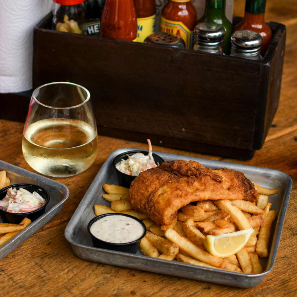 Also, if you’re a fan of fish sandwiches, you can start with our Hermit Sandwich which is fried Atlantic Cod topped with lettuce, tomato, our homemade coleslaw, and tartar sauce.