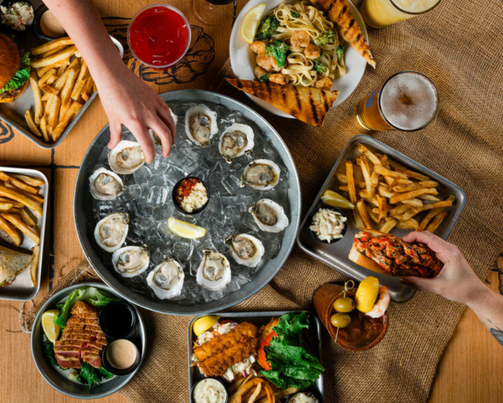 I would suggest our Seafood Trio which features Cold Crab Dip, perfectly fried Calamari and our Signature Sharkbite Shrimp. For the non-seafood lovers, we have an amazing Breakwater Burger, Salads, and Whole Hand-Tossed Wings which will satisfy your hunger cravings! All can be served along with our Signature cocktails like a Shack Attack Bloody Mary, Saltmarsh Margarita, or a Smirnoff Crush!